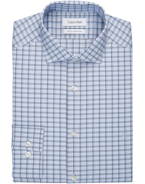 - 63% cotton 32% polyester 5% elastane|Point collar|No pockets|Slim Fit|Stretch fabric|Flex comfort collar stretches up to 1/2 inch|Calvin Klein is a global lifestyle brand that exemplifies bold and progressive ideals with a minimal aesthetic. Modern fabrications and sleek designs for the global fashion market.|