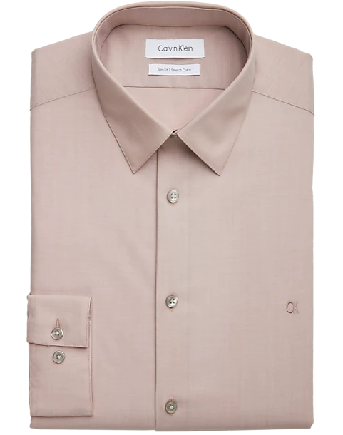 Made from a cotton blend with just the right amount of stretch, this Slim Fit dress shirt by Calvin Klein offers a phenomenal fit and ease of movement with a flex fit collar that stretches up to half an inch. An embroidered CK logo lends a refined finish. Slim Fit is slim and tapered across the chest, shoulders, armholes, waist and sleeves without compromising on comfort. Recommended for more triangle body types (broad shoulder and chest, narrow waist and hips).