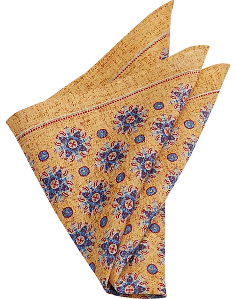Joseph Abboud Linen Pocket Square, Gold & Blue Medallion