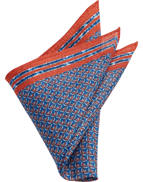 Joseph Abboud Linen Pocket Square, Rust & Blue