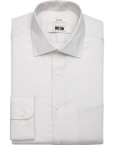 Rendered in a go-with-anything khaki check, this dress shirt by Joseph Abboud brings a fresh perspective to your wardrobe. Best of all, the non-iron fabric keeps you looking neatly pressed all day. Modern Fit is close-fitting without being constricting through the chest, body, and sleeve. Recommended for more rectangular body types (shoulders aligned with hips, with the waist slightly smaller).