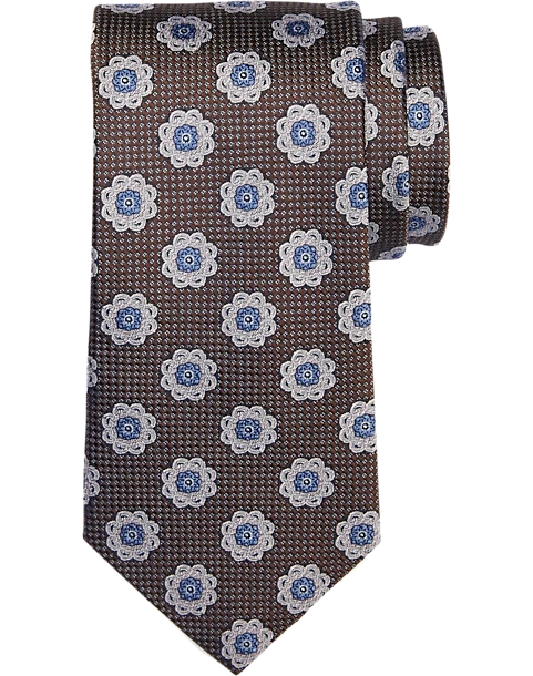 Joseph Abboud Narrow Silk Tie, Brown Medallion