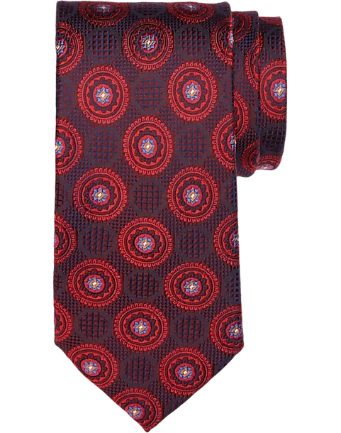 Joseph Abboud Narrow Silk Tie, Red Oval Medallion
