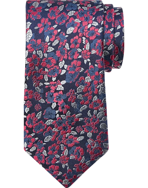 Joseph Abboud Narrow Tie, Red & Silver Floral