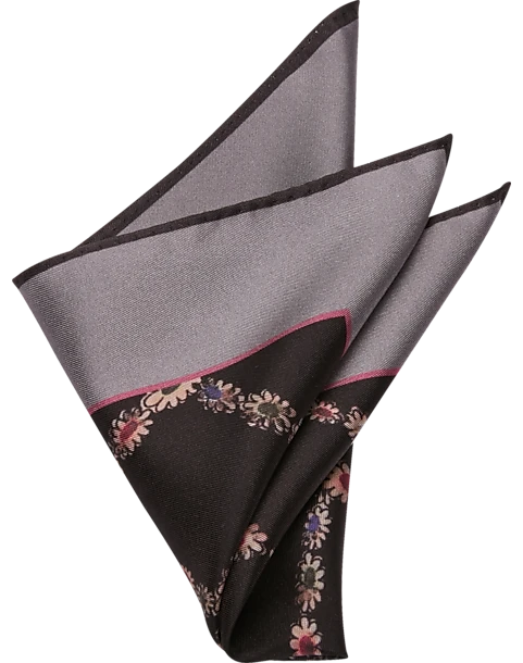 Joseph Abboud Pocket Square, Charcoal Floral Chain