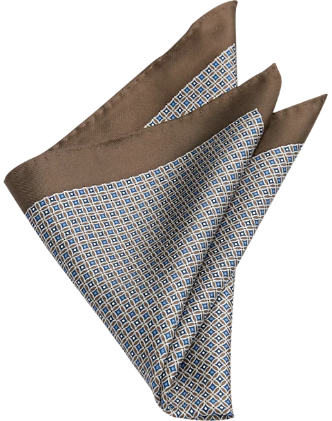 Joseph Abboud Pocket Square, Taupe Geo Check