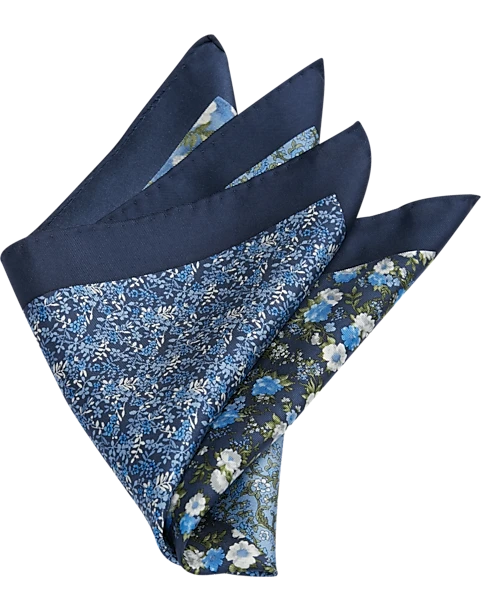 Joseph Abboud Silk Pocket Square, Navy Multi Pattern Floral