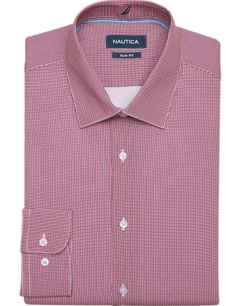 A micro check print gives this dress shirt from Nautica the same versatility of a solid hue. It’s tailored from a comfortable fabric blend with four-way stretch that’s designed to flex with your every move. Slim Fit is slim and tapered across the chest, shoulders, armholes, waist and sleeves without compromising on comfort. Recommended for more triangle body types (broad shoulder and chest, narrow waist and hips).