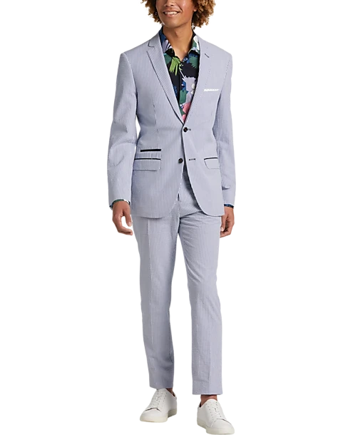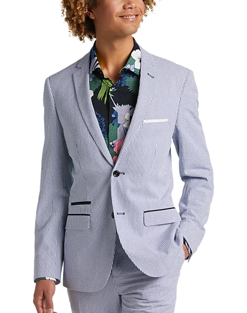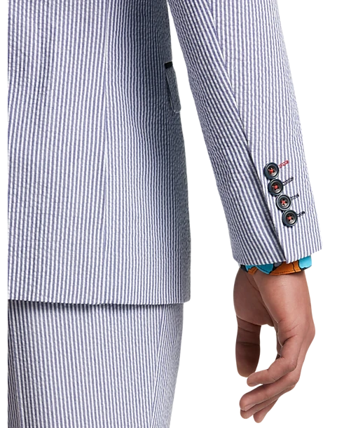 Look sharp and dapper in this classic, all-cotton seersucker suit separates coat from Paisley & Gray featuring a Slim Fit. With suit separates you can choose coat, pant, and/or vest sizes separately for an ideal fit.