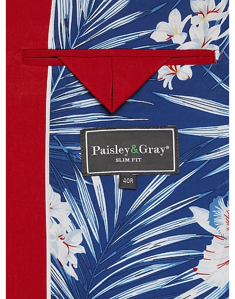 - Polyester Blend|Two button|Notch lapel|Side vents|Slim Fit|Coordinating pieces sold separately|Matching Pant: TMW_3XJY_3XJZ_11|Paisley & Gray|