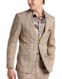 Step things up in a handsome coat that features a plaid pattern in tan and gray. It’s part of suit separates which lets you choose your coat, pants and vest sizes separately for your best fit ever.
