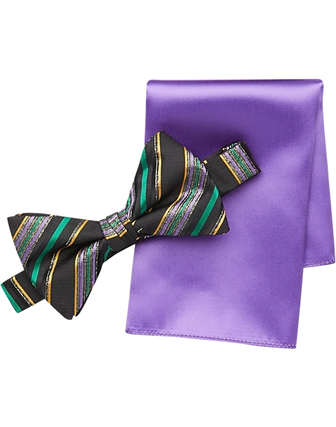 Pronto Uomo Green & Purple Circle Dots Bow Tie & Pocket Square Set