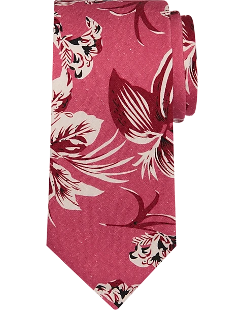 Pronto Uomo Narrow Tie, Berry Tropical Print
