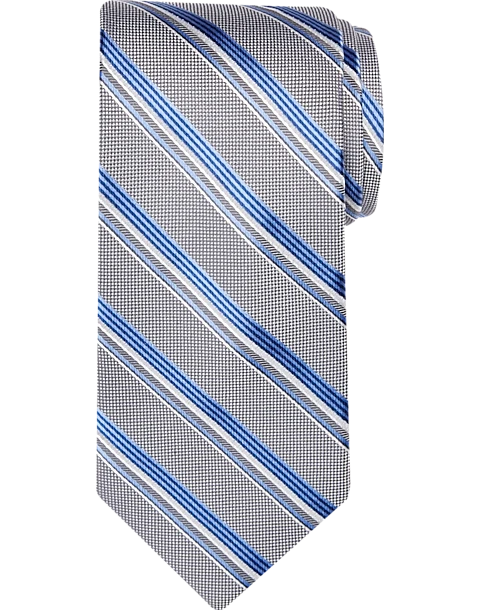 Pronto Uomo Narrow Tie, Blue And Charcoal Stripe