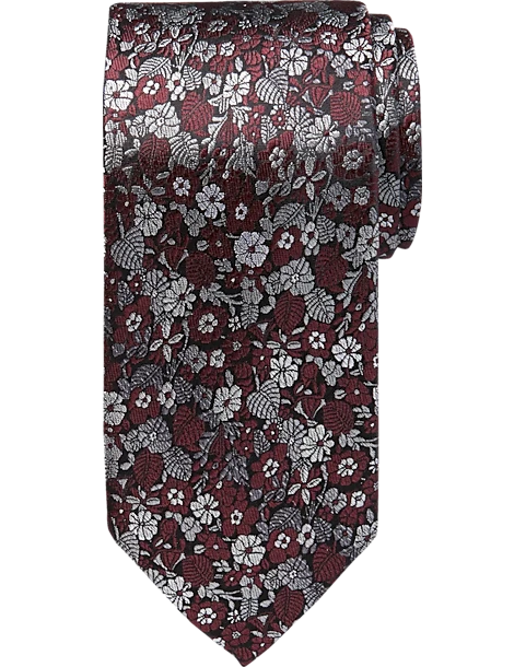 Pronto Uomo Narrow Tie, Blue & Burgundy Floral