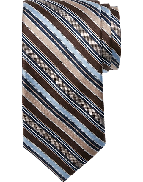 Pronto Uomo Narrow Tie, Brown & Blue Stripe