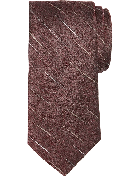 Pronto Uomo Narrow Tie, Burgundy Sketched Stripe