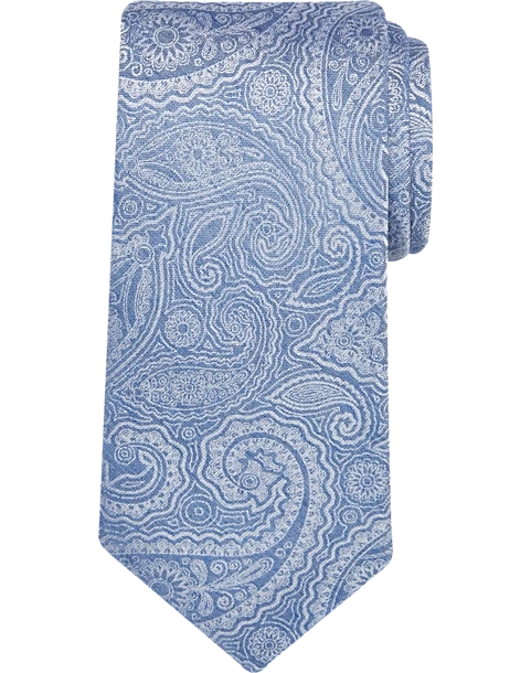Pronto Uomo Narrow Tie, Light Blue Paisley