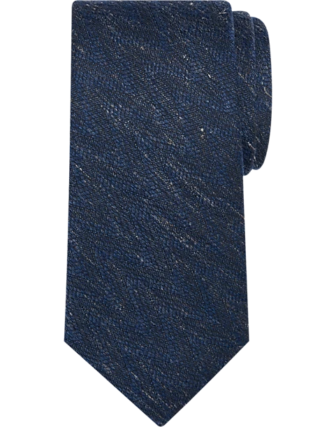 Pronto Uomo Narrow Tie, Navy Sketched Zigzag