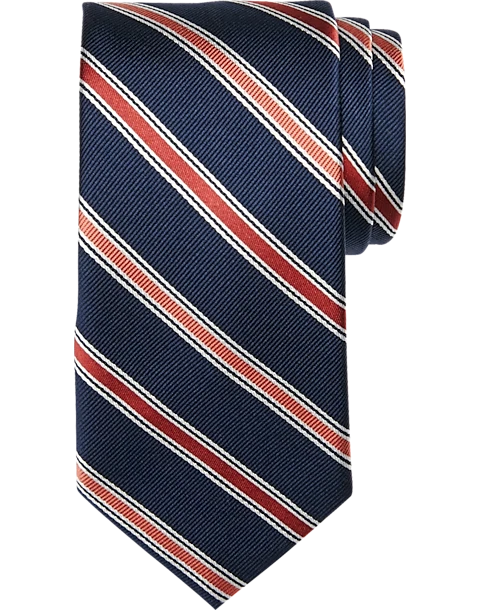 Pronto Uomo Narrow Tie, Navy Stripe