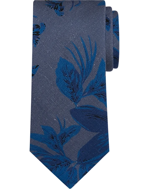 Pronto Uomo Narrow Tie, Navy Tropical Print