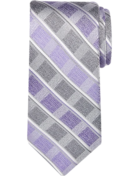 Pronto Uomo Narrow Tie, Plum & Charcoal Grid Stripe