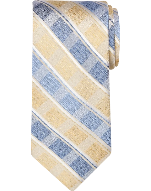 Pronto Uomo Narrow Tie, Yellow & Blue Grid Stripe